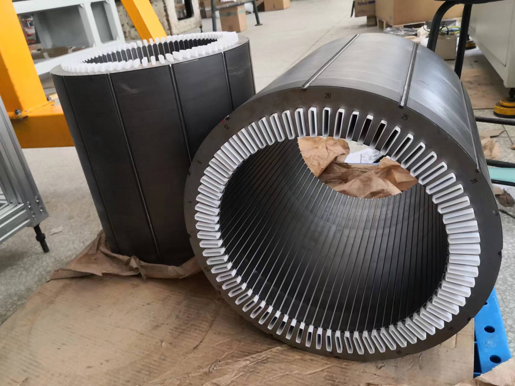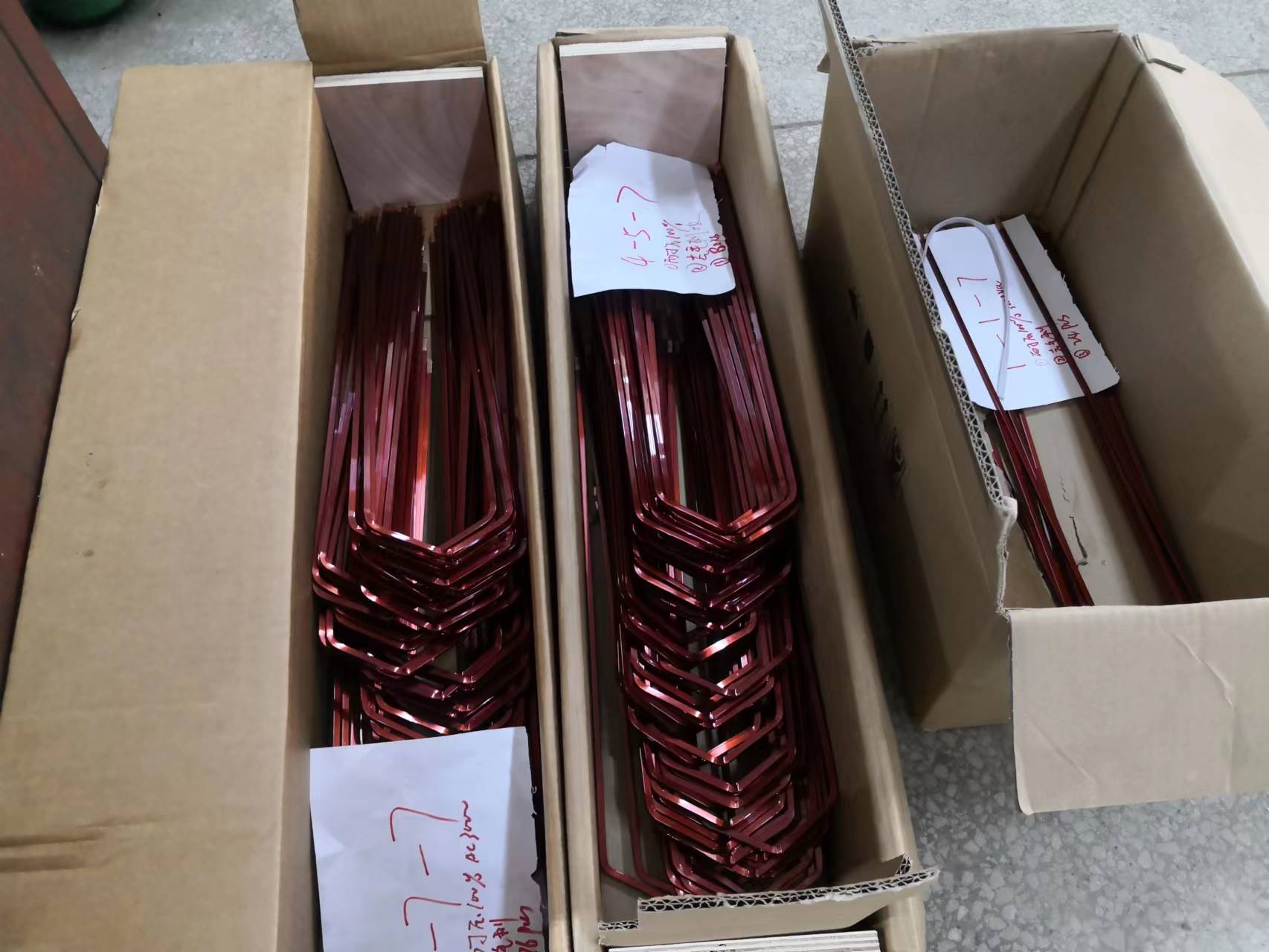 新能源大功率扁線電機定子產品制造進行時: 成功解決了大功率扁線定子多項制造工藝技術難題: 1、線長大于1米的扁線成型技術; 2、整體分線擴口技術; 3、八層粗扁線扭頭技術;